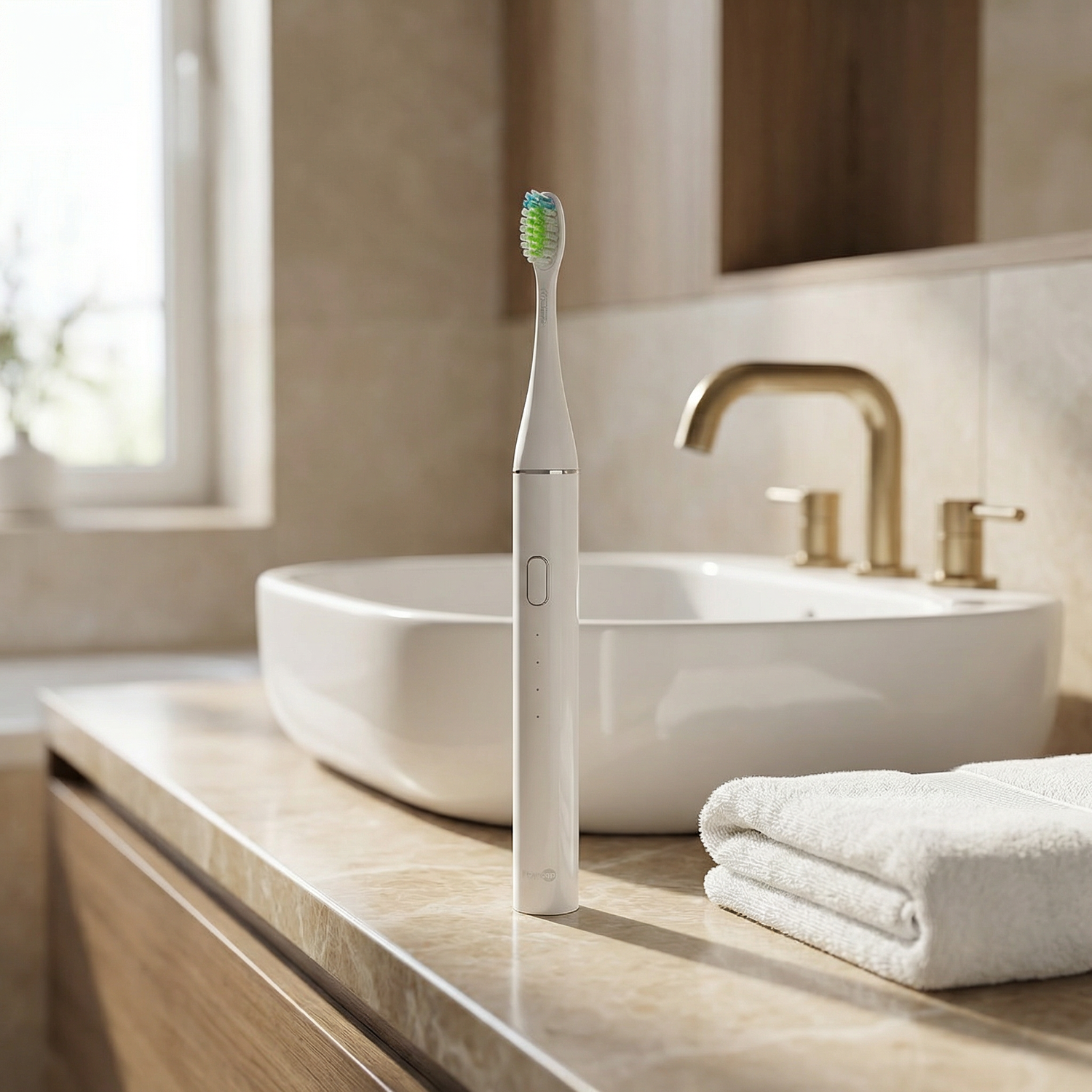 Auch die Schallzahnbürste gehört zur Kategorie der elektrischen Zahnbürsten, unterscheidet sich aber in ihrer Funktionsweise deutlich. Anstatt eines rotierenden Bürstenkopfes erzeugt sie durch hochfrequente Vibrationen eine sanfte, aber effektive Reinigungswirkung.