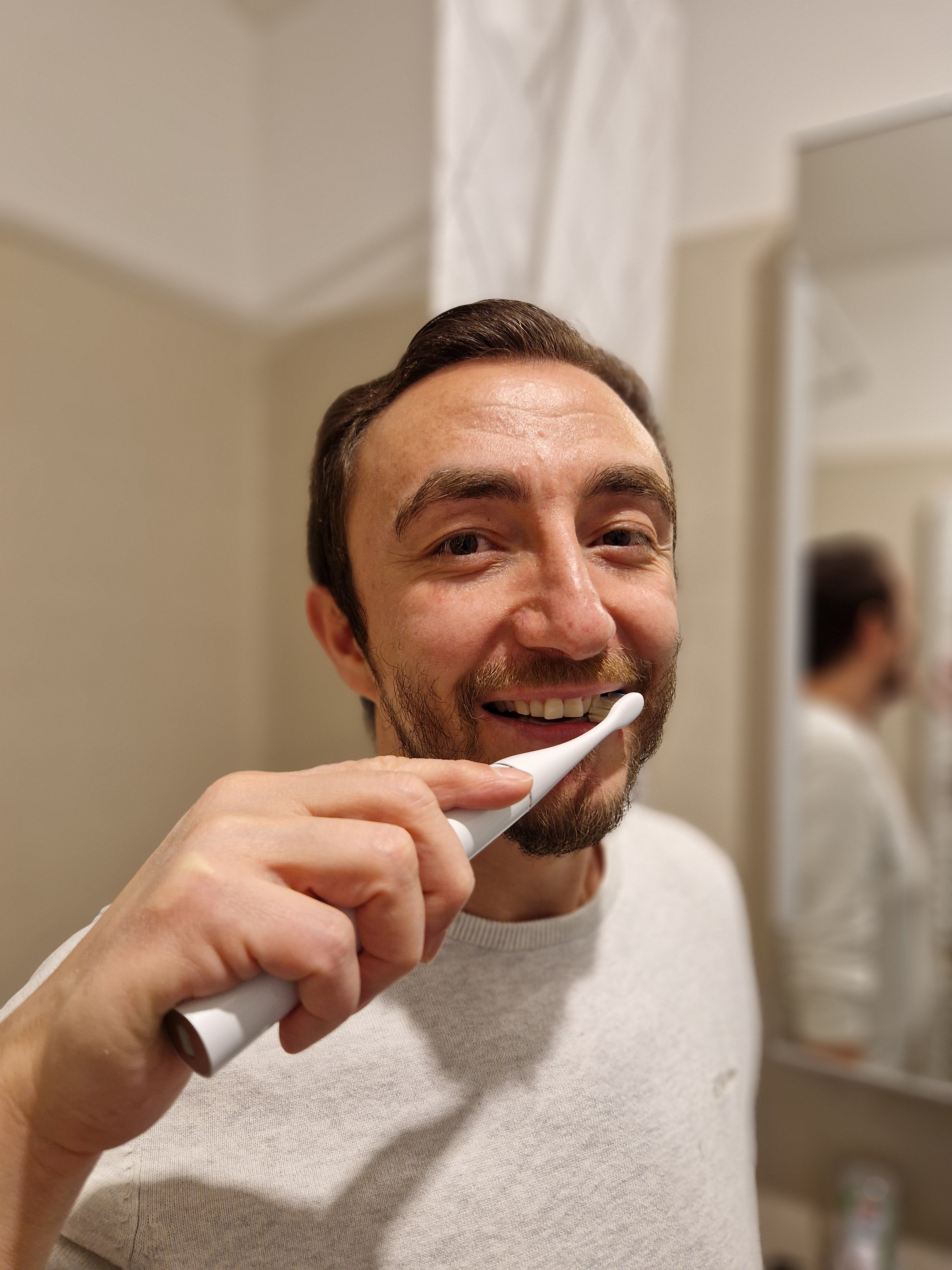 „Zähneputzen geht jetzt auch stilsicher. Mit extralanger Akkulaufzeit und Selbstreinigung auf Knopfdruck“